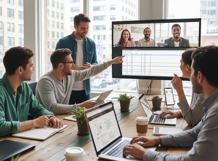 Seamless Meetings: Host high-quality, professional video conferences instantly with Google Meet. Share screens, use noise cancellation, and break down barriers with real-time translated captions.